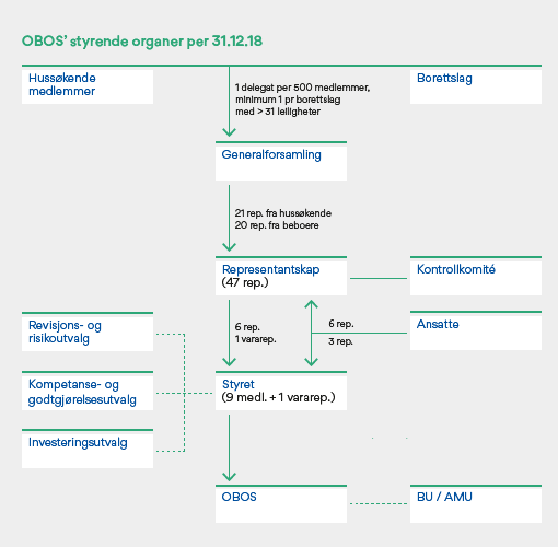 OBOS følger «Norsk anbefaling for eierstyring og selskapsledelse» av 17. oktober 2018 (Anbefalingen). Anbefalingen er primært laget for børsnoterte selskaper, men OBOS har valgt å legge prinsippene i anbefalingen til grunn for sin utøvelse av eierstyring og selskapsledelse så langt det er relevant for virksomheten.