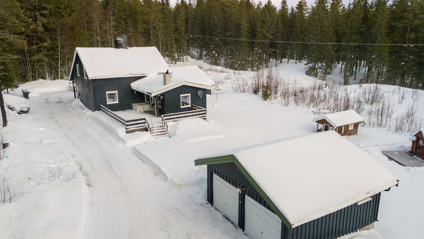 Fin enebolig med usjenert beliggenhet i skogen. Tre soverom, stor stue og kjøkken. To garasjer, grillhus, romslig tomt!