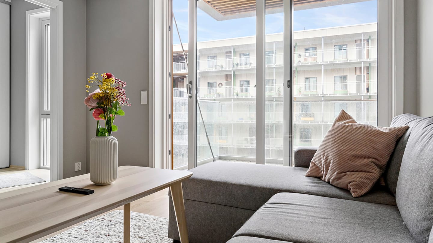 Smart 2-roms i 3. etg. fra 2022 med vestvendt balkong. Moderne standard, hvitevarer, skyvedørsgarderober, sykkelpark.