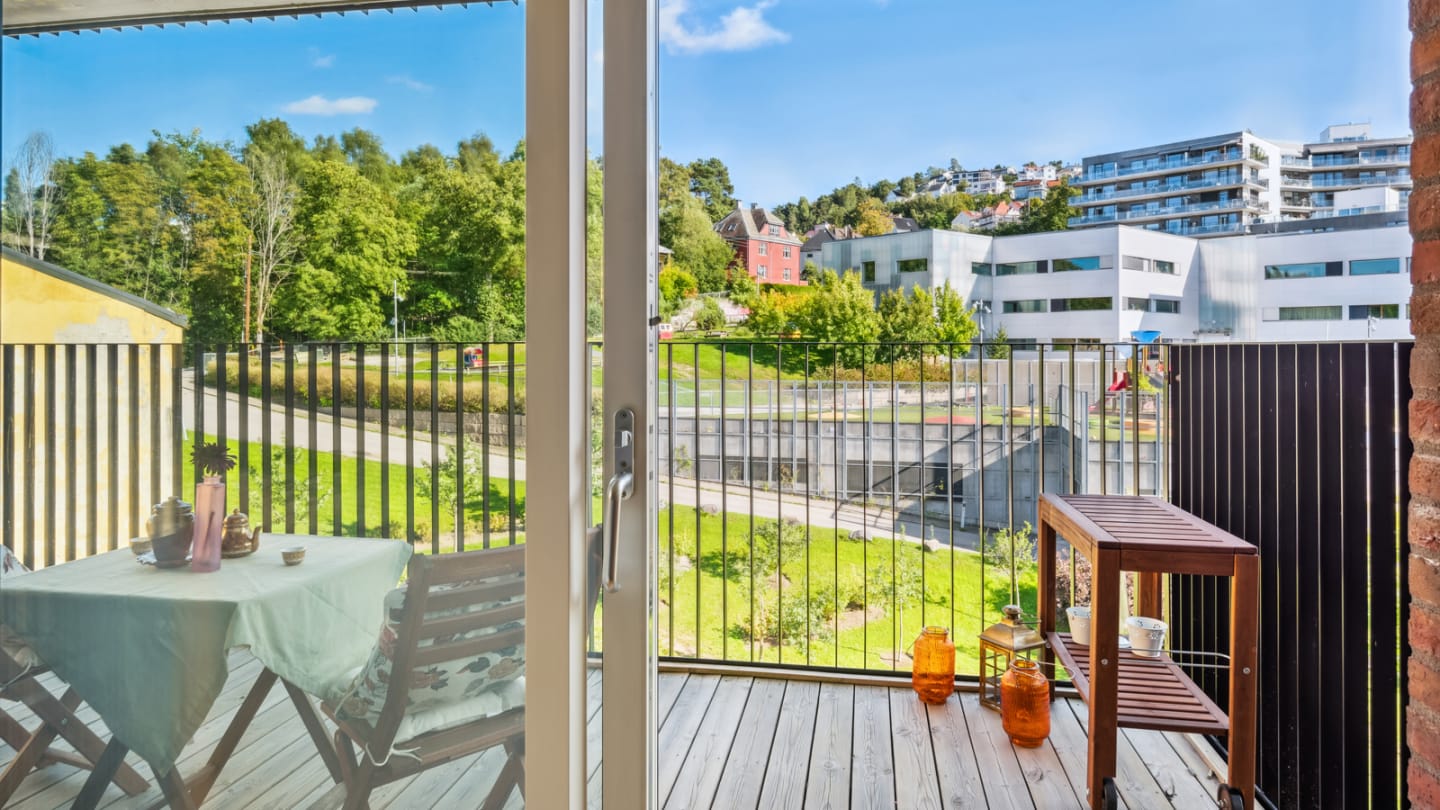 Lys og tiltalende 4-roms hjørneleilighet med utleiedel. IN-ordning. Balkong på 13 kvm. Heis, Fyring og VV.
