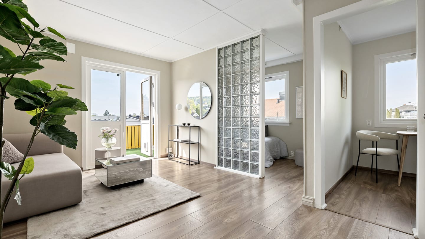 Snerten 1 roms leilighet med avdelt alkove med vindu. Balkong. Perfekt førstegangskjøp!