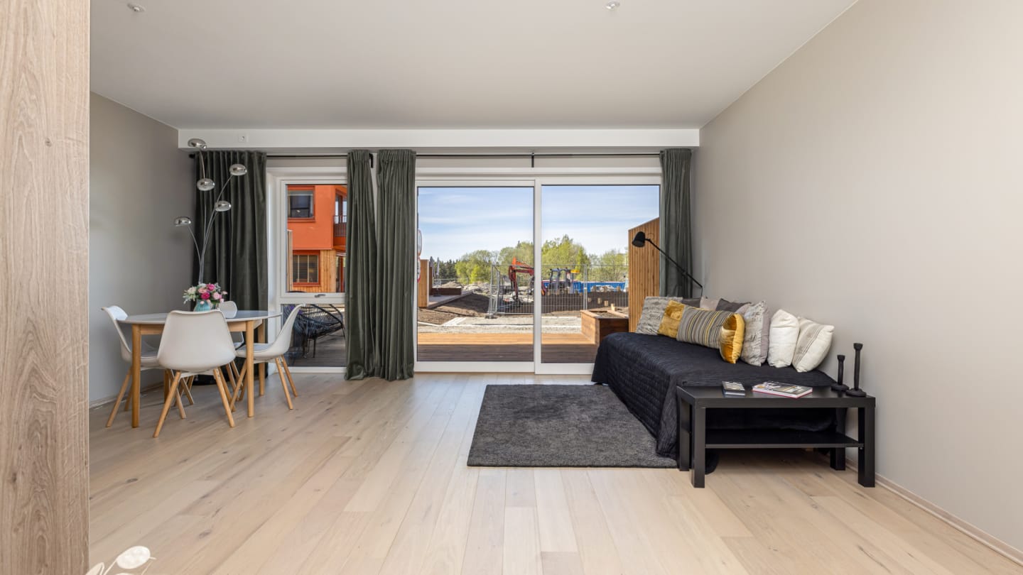 Ny og moderne 1-roms med fin uteplass, kjøkken med hvitevarer og flislagt bad på Hamar vest.