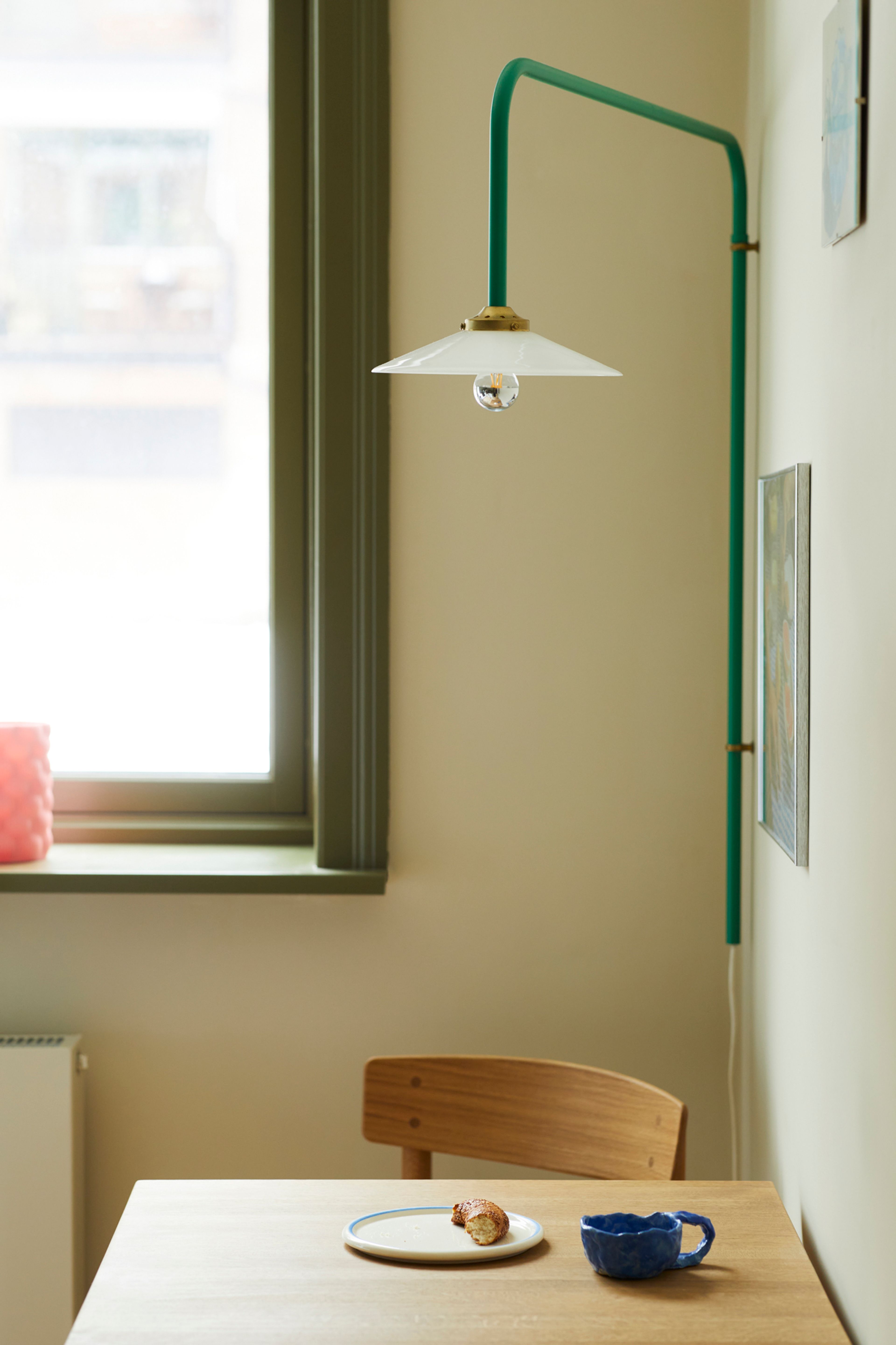 En skulpturell vegglampe fra Valerie Objects rammer inn den lille spisekroken.
