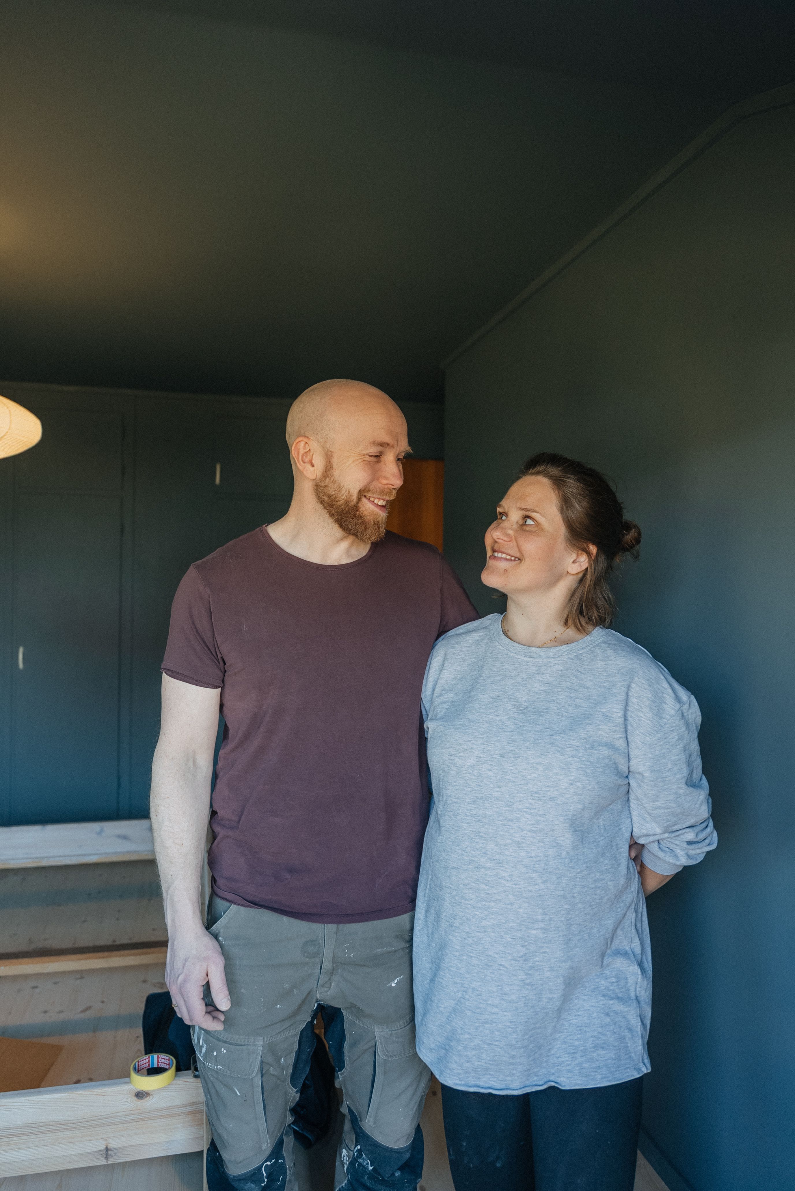 Familien startet med å pusse opp husets andre etasje, og denne våren var det Anne Birgit og Kristoffers 14 kvadratmeter store soverom som sto for tur. Sammen har paret planlagt oppussingen og innkjøpene godt.