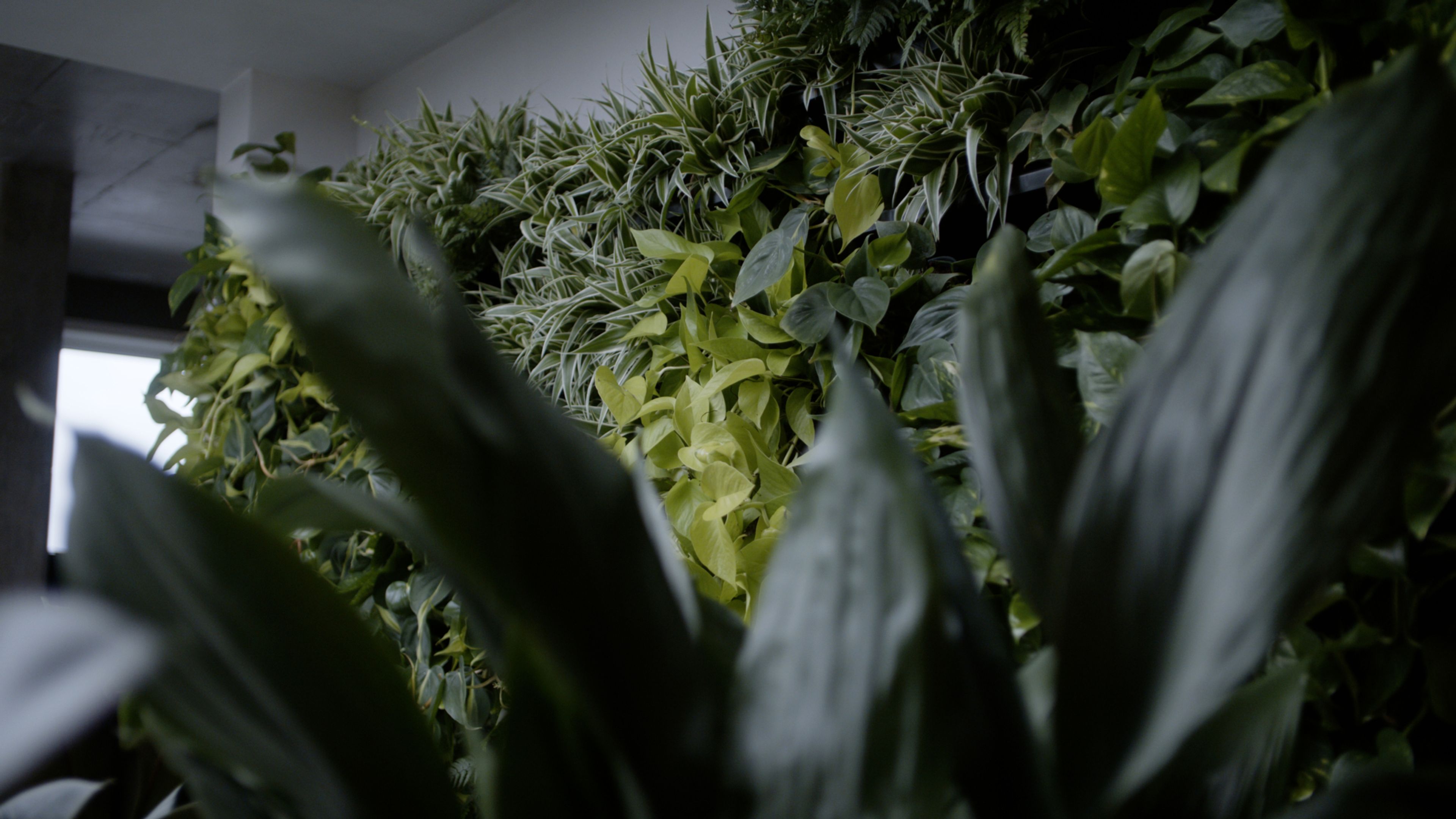 Det er her arkitekturen og de grønne plantene i innendørshagen kommer til unnsetning.